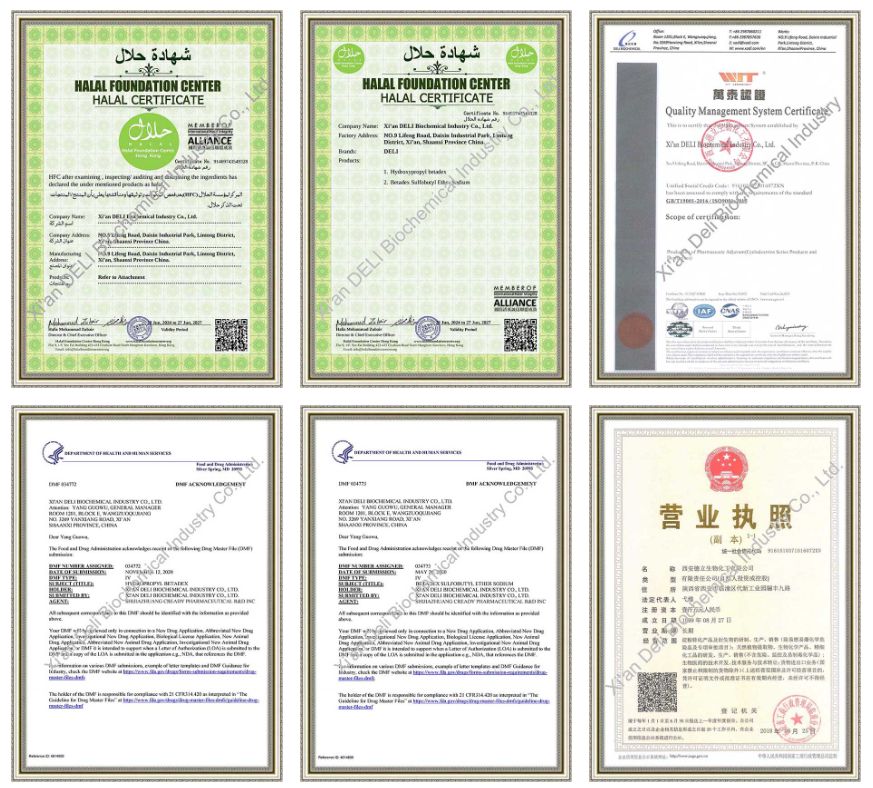 Завдяки твердій прихильності до якості, прозорості та обслуговування, орієнтованого на клієнта, Xi’an DELI встановила довгострокові партнерські відносини з фармацевтичними та біотехнологічними компаніями по всьому світу та продовжує залишатися надійним постачальником допоміжних речовин циклодекстрину для ін’єкційних та інших неоральних лікарських форм.