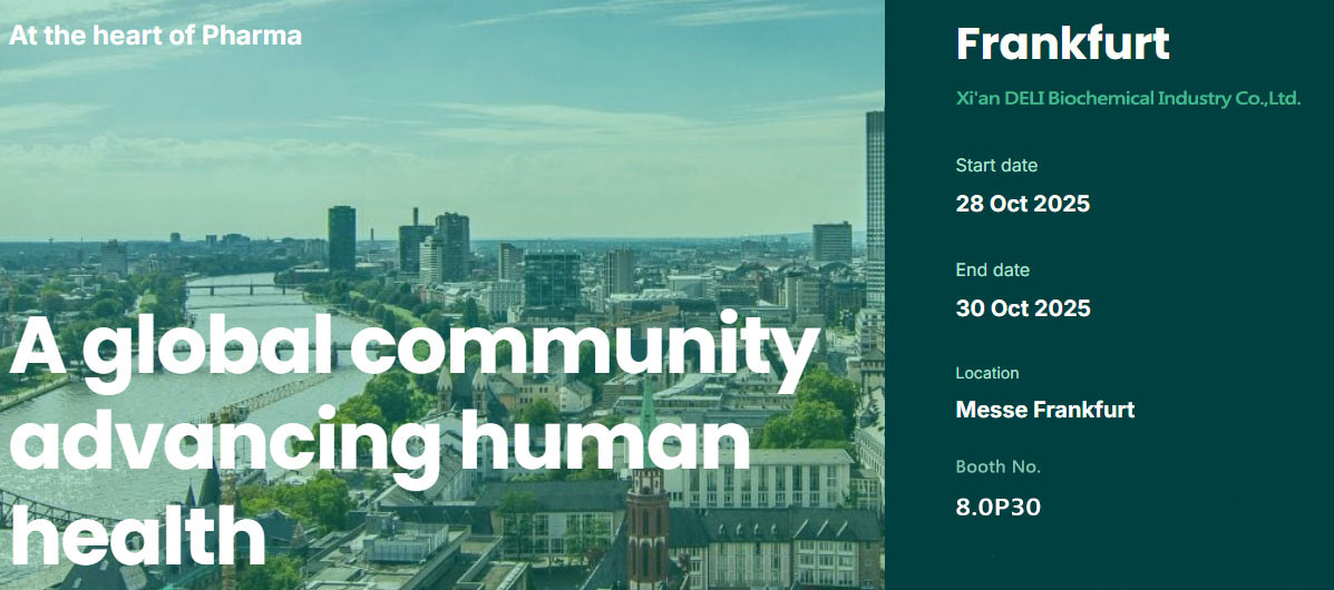 Сіань Делі Біохімічний Industry Co., Ltd. візьме участь у виставці CPhI Europe 2025, яка відбудеться 28–30 жовтня 2025 року у Франкфурті, Німеччина.