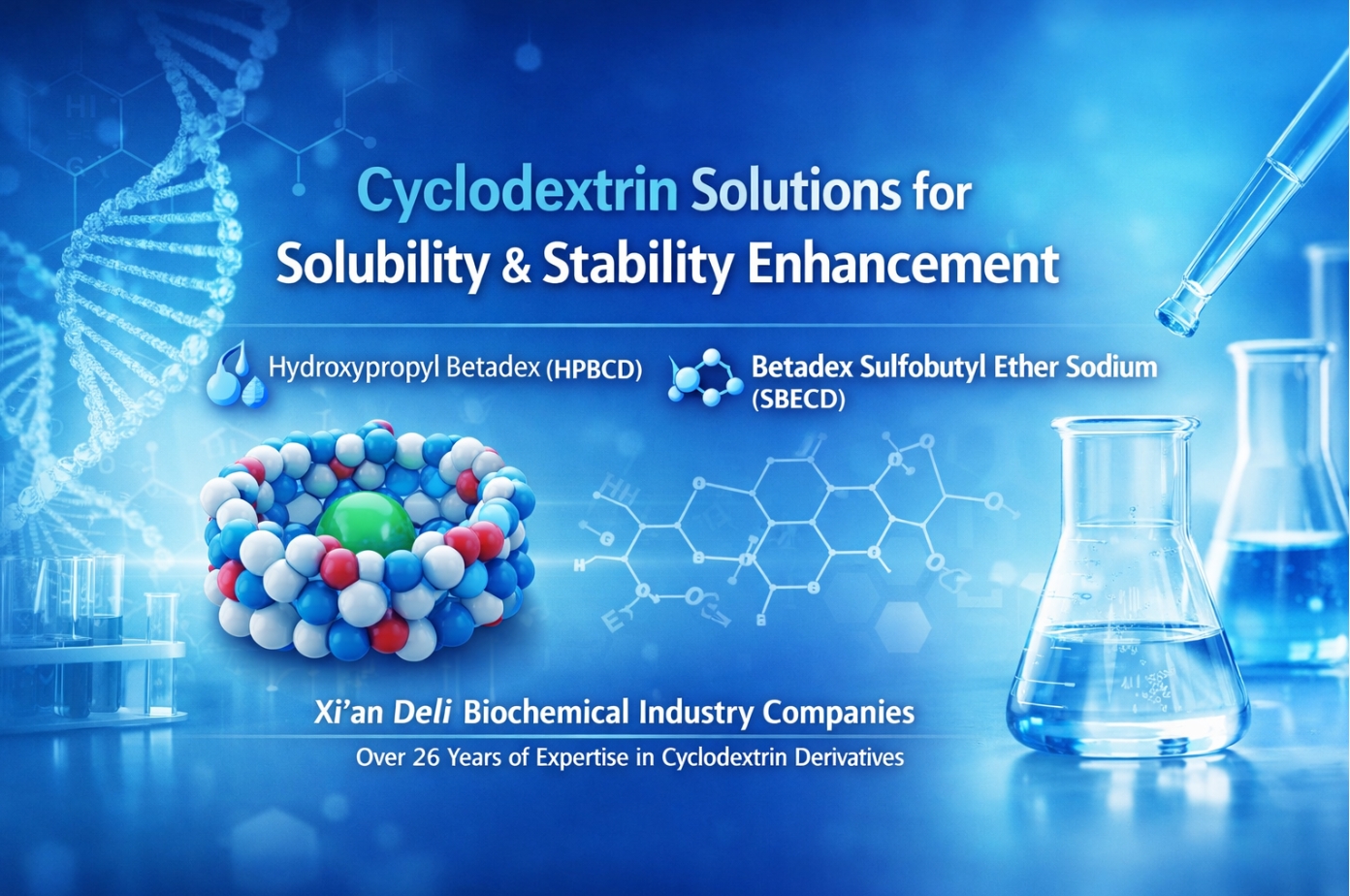 Циклодекстрини широко відомі своєю здатністю покращувати розчинність і стабільність погано розчинних або хімічно чутливих сполук. Завдяки своїй унікальній циклічній молекулярній структурі циклодекстрини та їх похідні стали важливими функціональними допоміжними речовинами у фармацевтичній, хімічній та суміжних галузях рецептур. У відповідь на зростаючі технічні та нормативні вимоги Xi’an Deli Biochemical ще більше вдосконалила технічну документацію та підтримку продуктів для своїх ключових похідних циклодекстрину:гідроксипропілбетадекс (HPBCD) і бетадекс сульфобутиловий ефір натрію (SBECD).