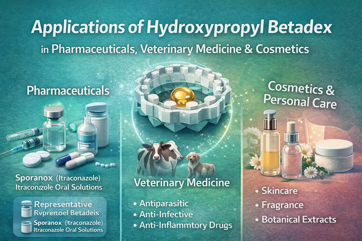 Завдяки підтвердженій ефективності та широкому нормативному визнанню Hydroxypropyl Betadex є універсальним рішенням для покращення якості рецептури у фармацевтичній, ветеринарній та косметичній промисловості.