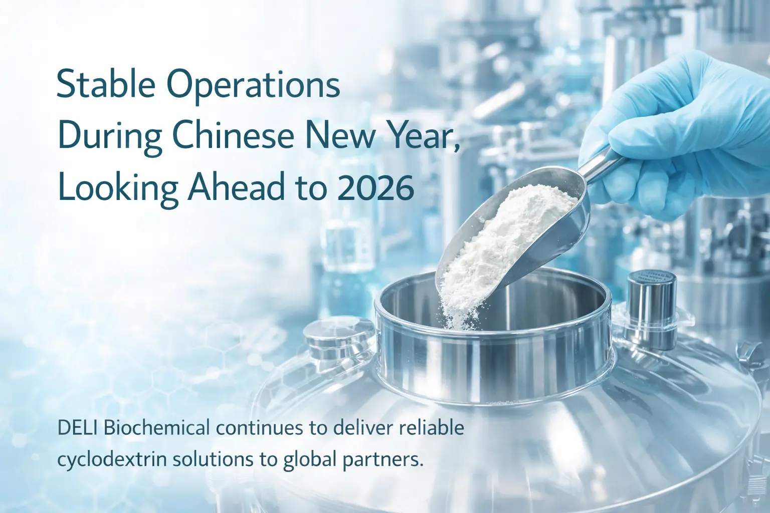 Маючи понад 26 років досвіду у виробництві циклодекстрину, DELI Biochemical спеціалізується на гідроксипропілбетадексі та бетадекссульфобутилефірі натрію, які широко використовуються у фармацевтичних композиціях, препаратах для ін’єкцій, ветеринарних продуктах і тонкій хімії. Протягом святкового періоду компанія впроваджувала добре структуровані графіки чергування та суворі протоколи безпеки, забезпечуючи безперебійне проходження ключових виробничих процесів і доставки замовлень.
